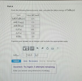 Given The Following Thermodynamic Data Calculate The Lattice Energy Of Cabr2 S Home Work Help Learn Cbse Forum